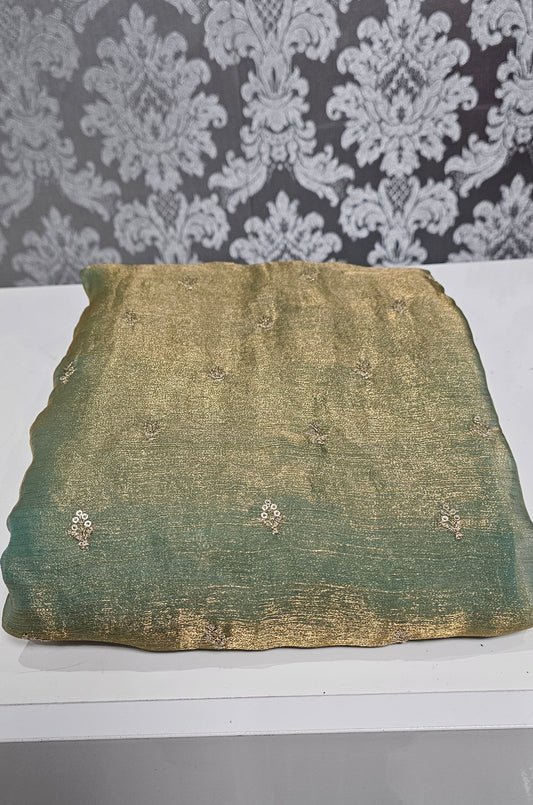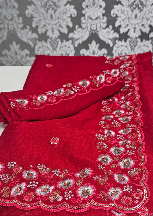 Stunning crushed silk fully embroidered and hand worked saree