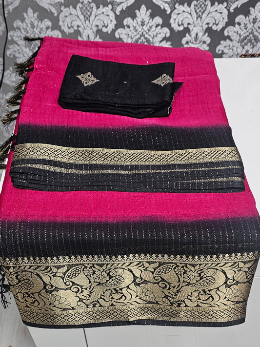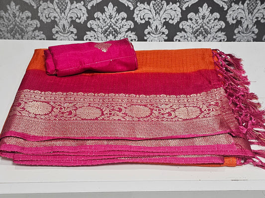 Crush silk saree with readymade blouse