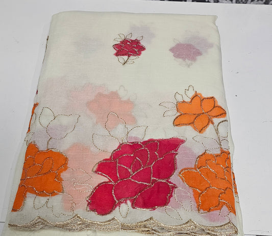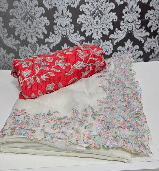 Soft organza fully embroidered saree with blouse piece