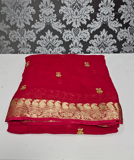 Crush georgette saree with blouse piece ( chilli red )