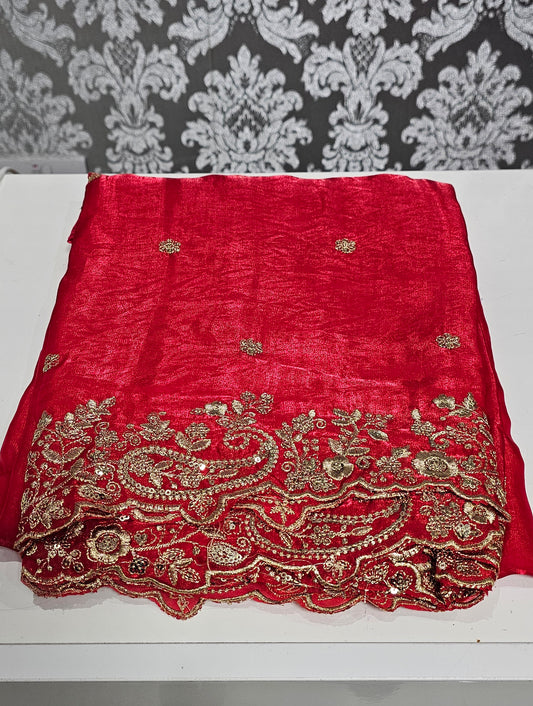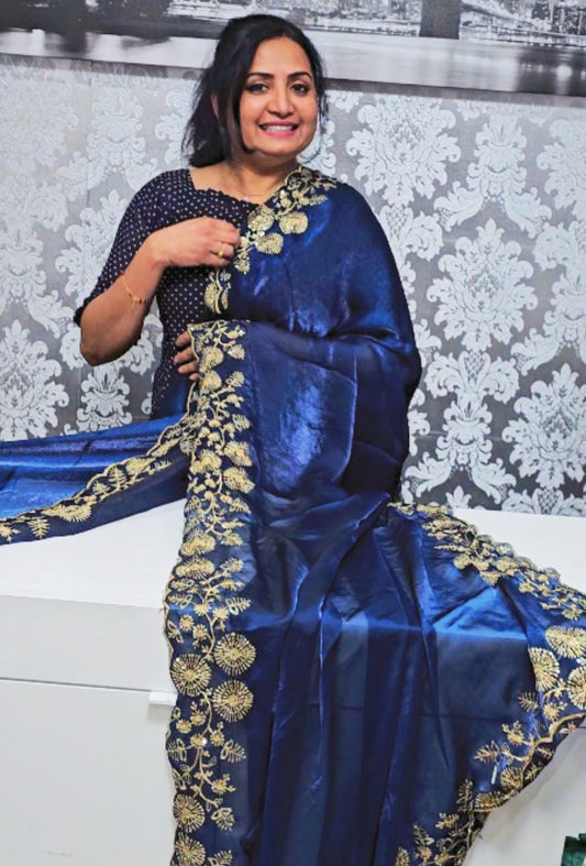 Stunning crushed silk fully embroidered and hand worked saree