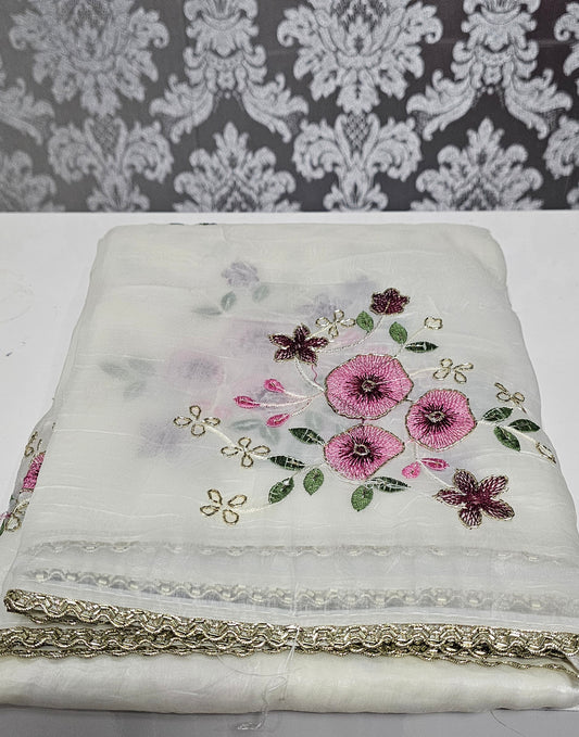 Crushed georgette embroidered saree