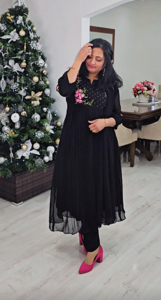 Stunning faux georgette party wear three piece kurti set 💕(black)