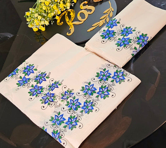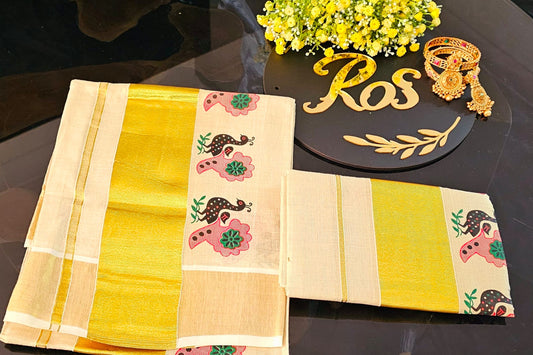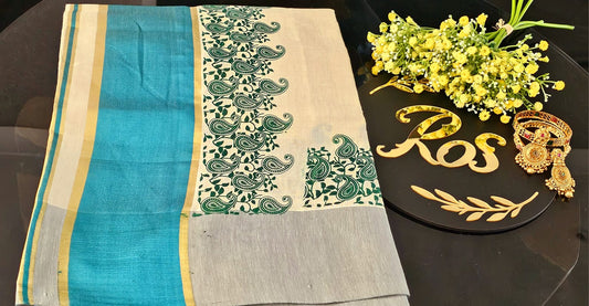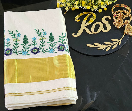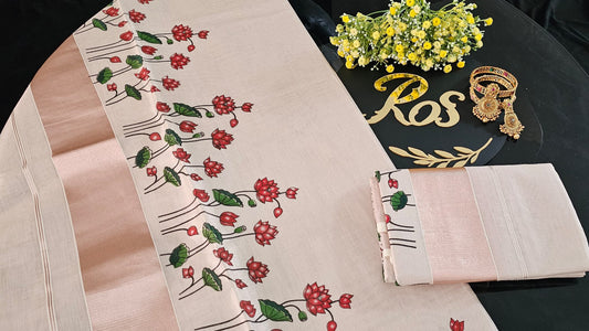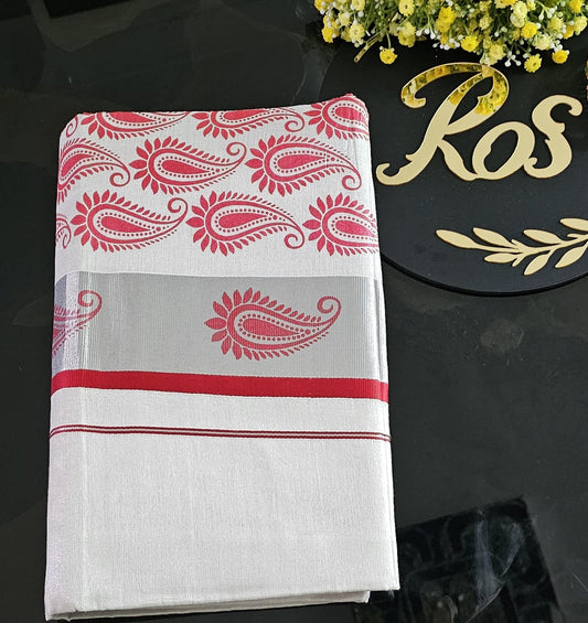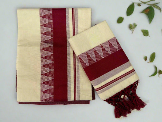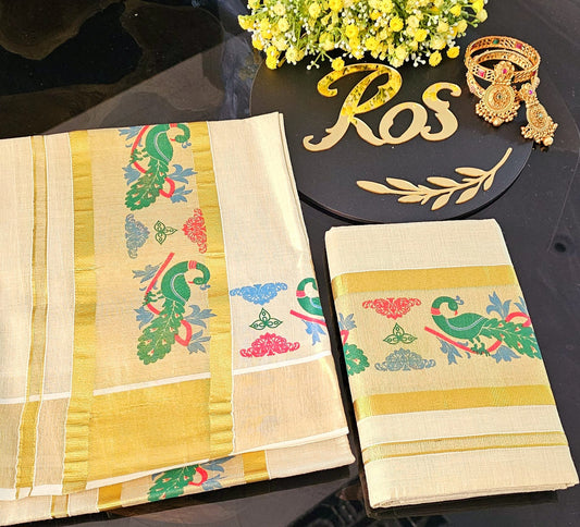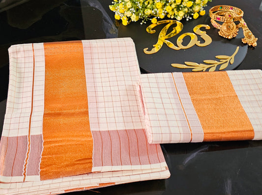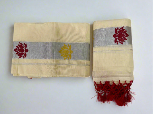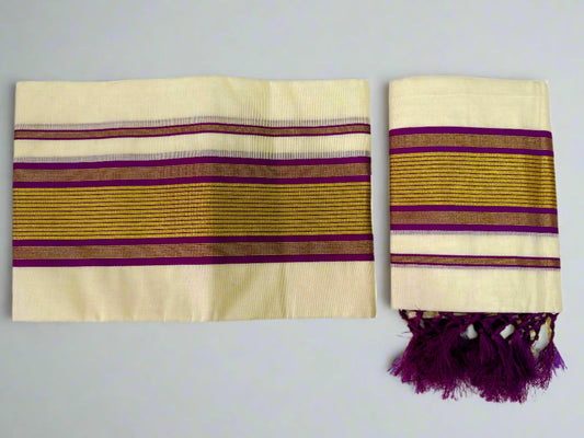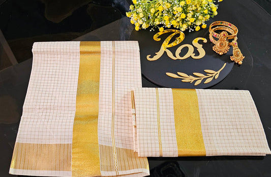 Settu Mundu with Matching Ready made blouse (fits up to 3xL)