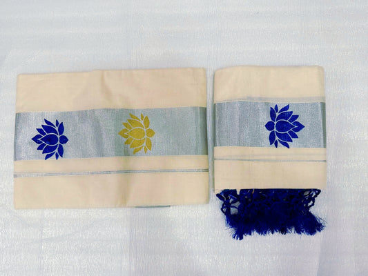 Settu Mundu with Ready made silk blouse (fits up to 3xL)