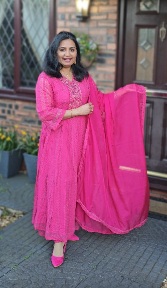 Beautiful lace panel cut Anarkali three piece suit 💕