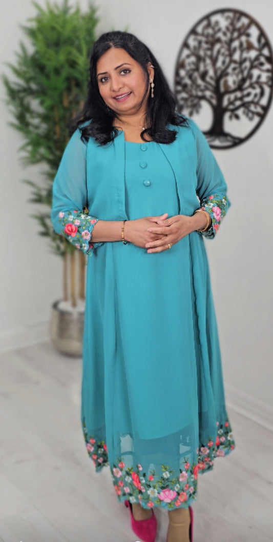 Beautiful embroidered & scalloped dress with shrug 💕*