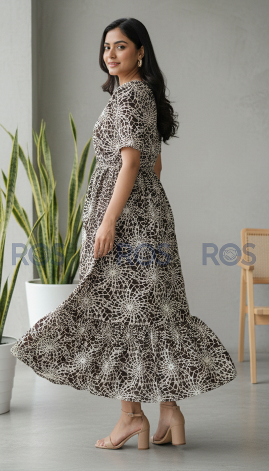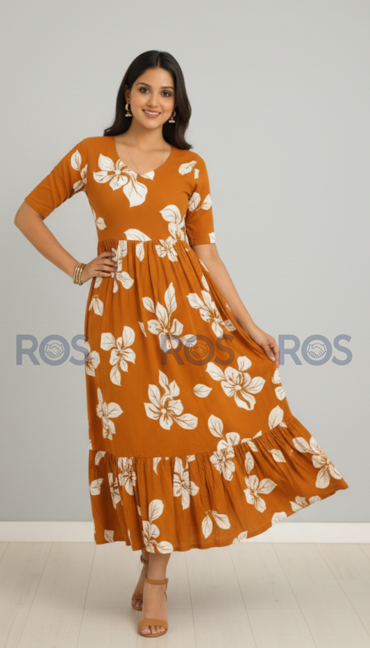 Premium Rayon Floral printed dress/ kurti ( Dark Brown )