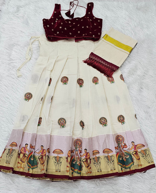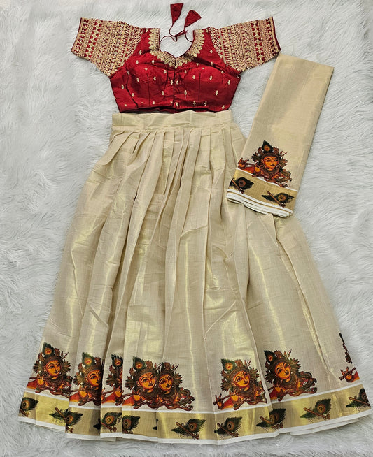 Beautiful Onam Ready to wear Dhavani set