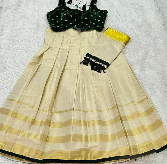 Beautiful Onam ready to wear Dhavani set.