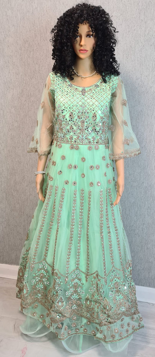 Party wear fully embroidered and mirror worked gown
