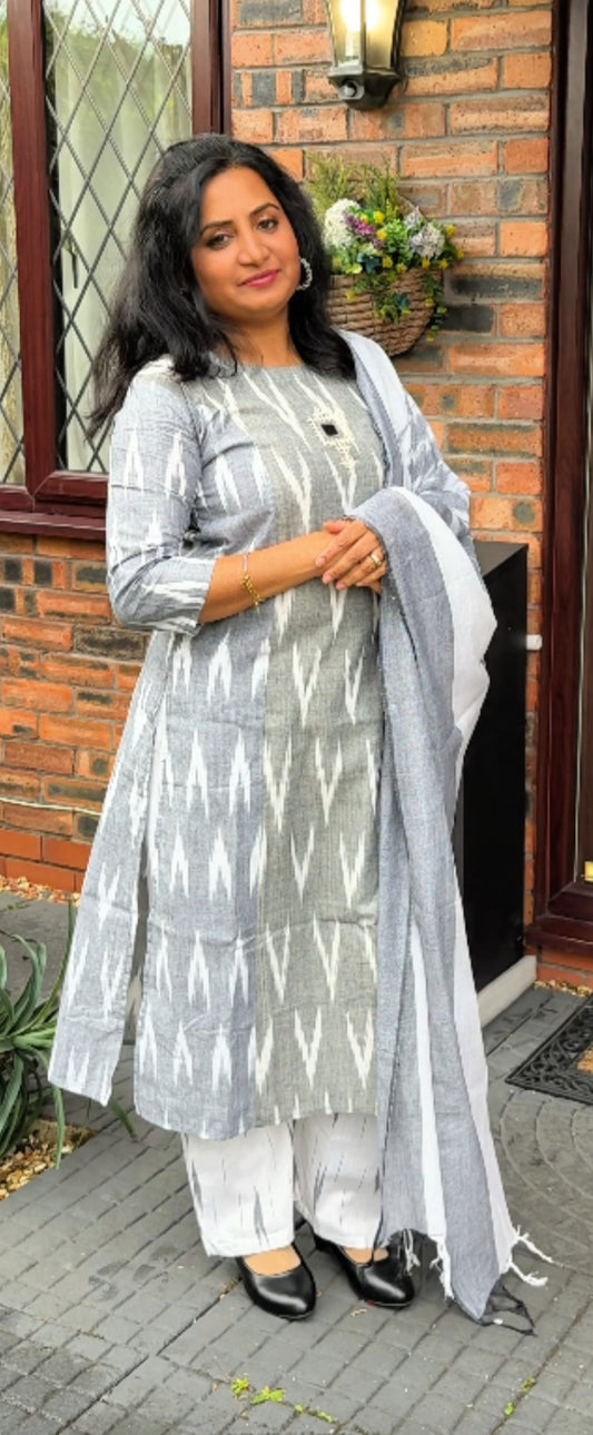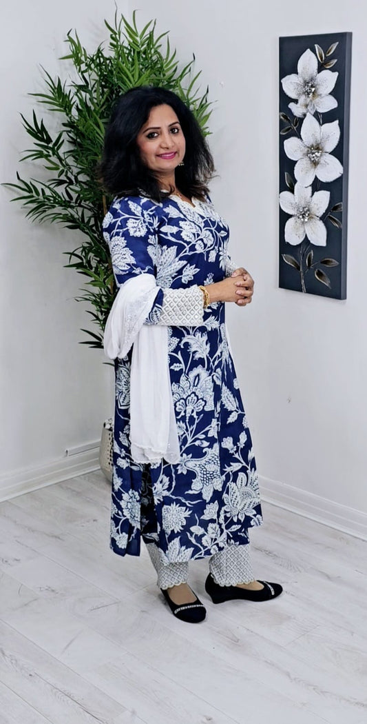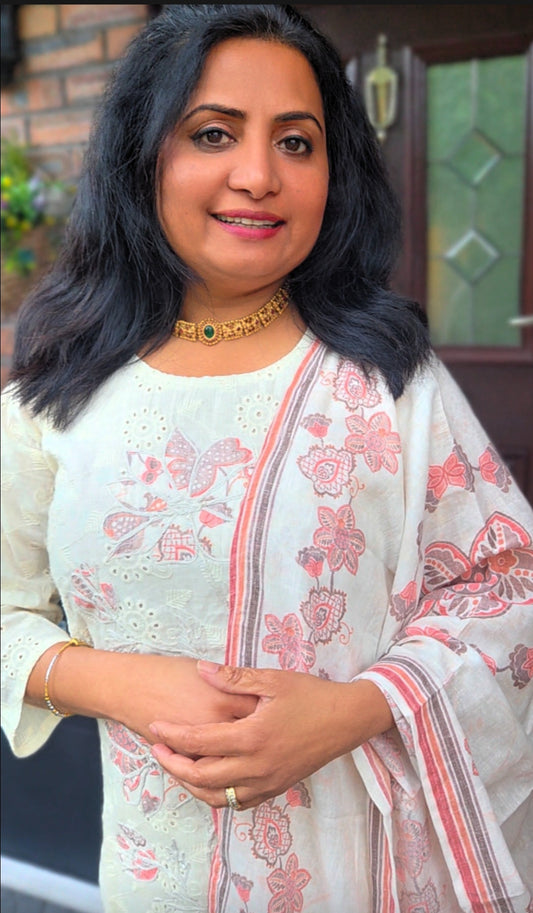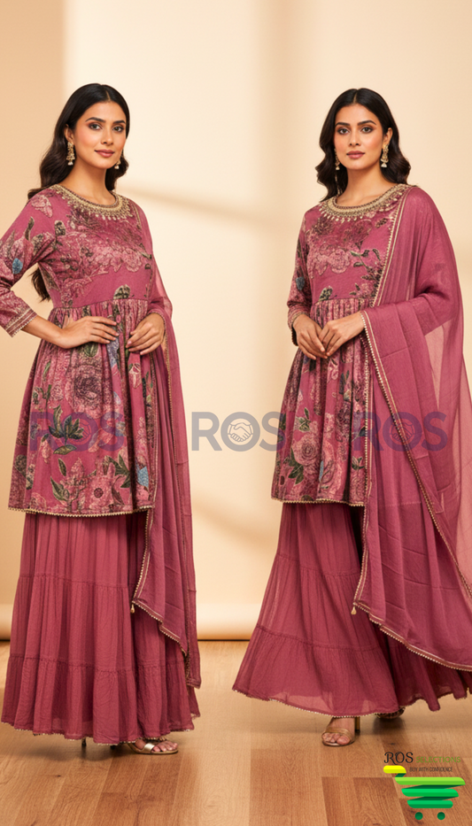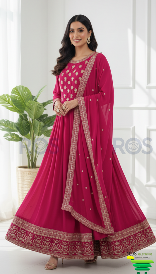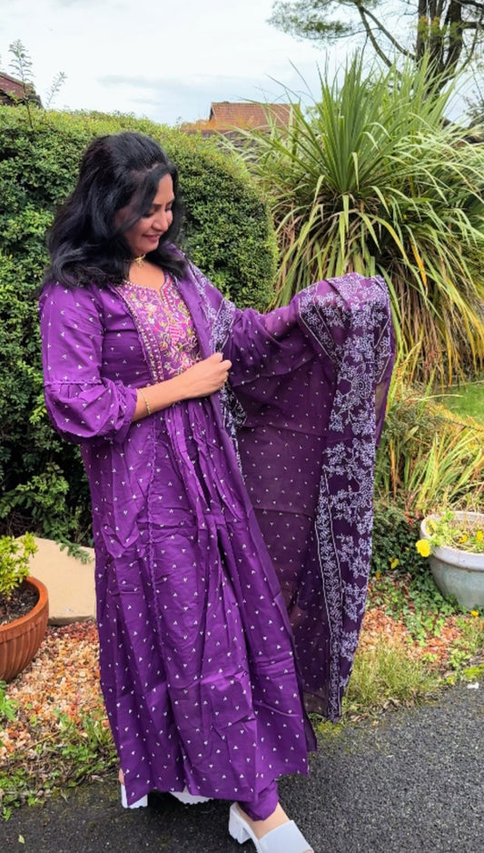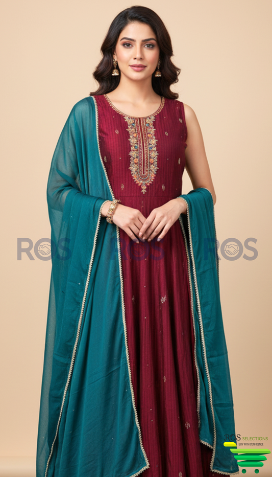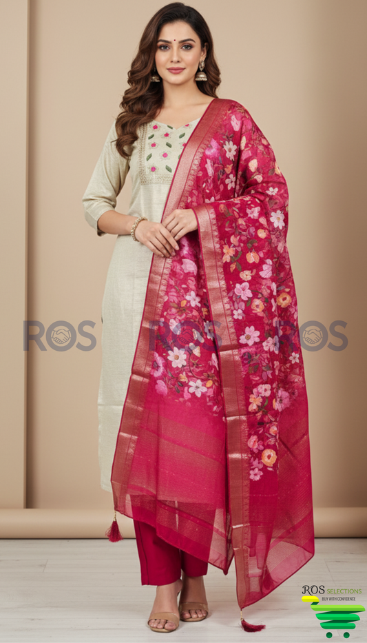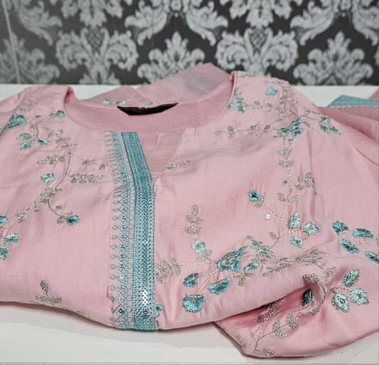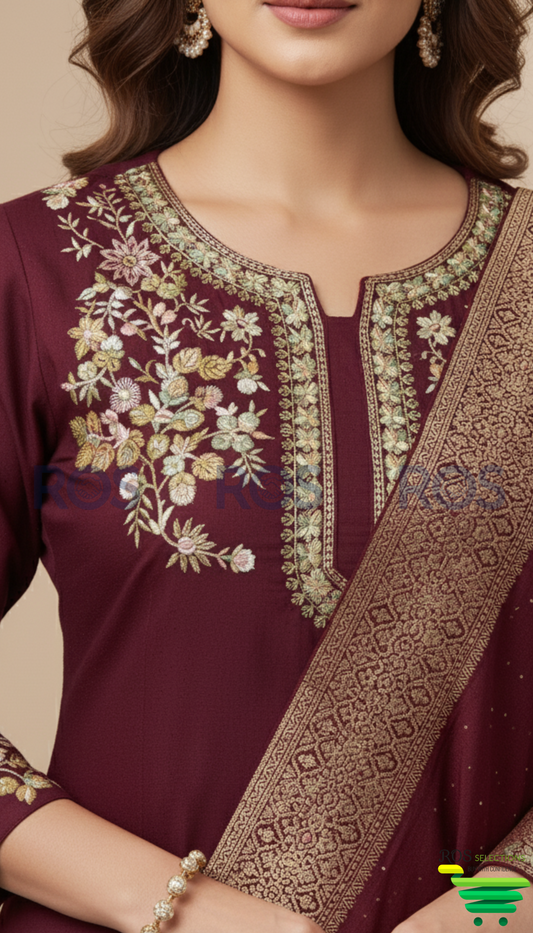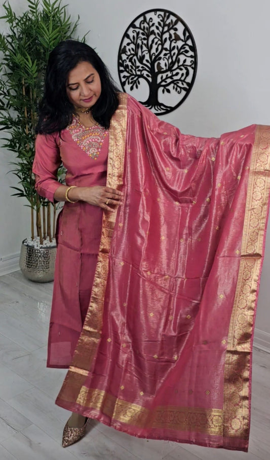Beautiful silk embroidered three piece suit with banarasi dupatta