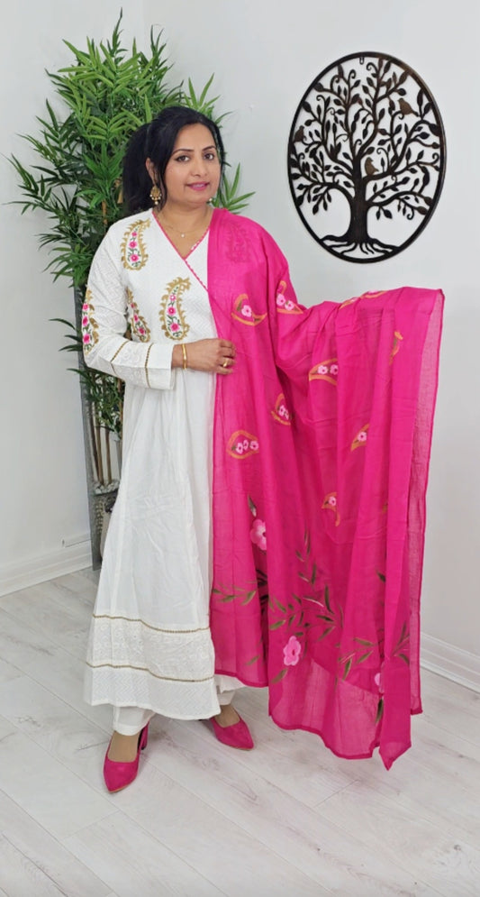 Beautiful embroidered cotton panelcut anarkali three piece suit