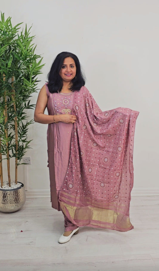 Silk three piece suit with banarasi dupatta