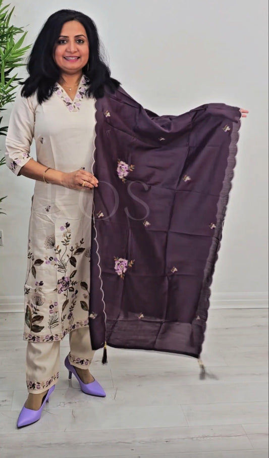 Chickenkari three piece suit with banarasi dupatta