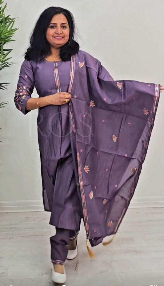 Silk embroidered three piece suit